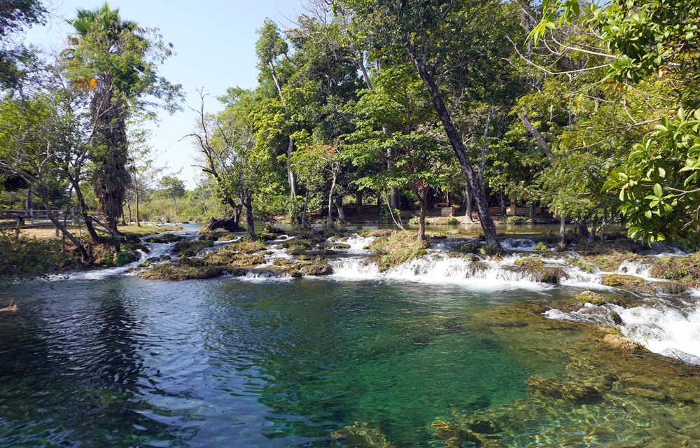 Szemben a maja romvárosokkal itt rengetegen vannak. A parkolóban alig találunk helyet, előre félek, mi vár ránk odabenn. Szerencsére a parkban a tömeg eloszlik. A fürdőzők többsége a folyó alsó szakaszán gyűlik össze és csak a kirándulók merészkednek feljebb az ösvényen. Mi a Cascada Mariposánál táborozunk le, itt kezdenek a srácaink játszani.