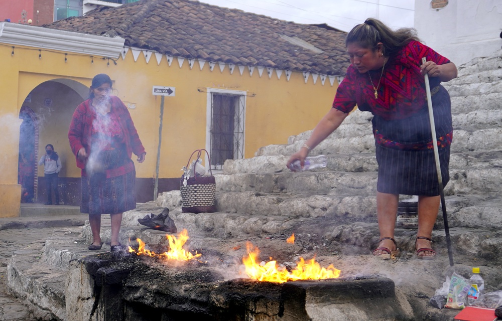 Ez már Chichicastenango templomának lépcsője, ahol ezúttal is szertartásokat tartottak a kicse sámánok. Ez a város a vallási szinkretizmus alfája és omegája.