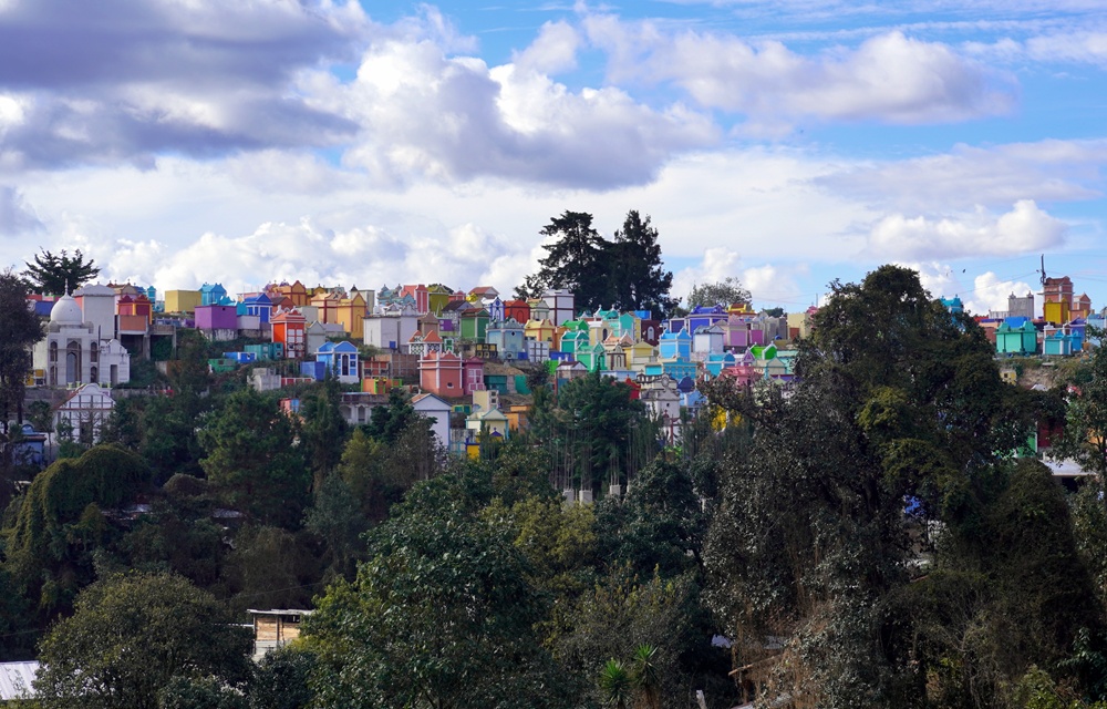Természetesen felkerestük Chichicastenango színes temetőjét is. Itt ezúttal nem láttunk áldozatbemutatást, de attól még megérte sétálni egyet a színes kripták között.