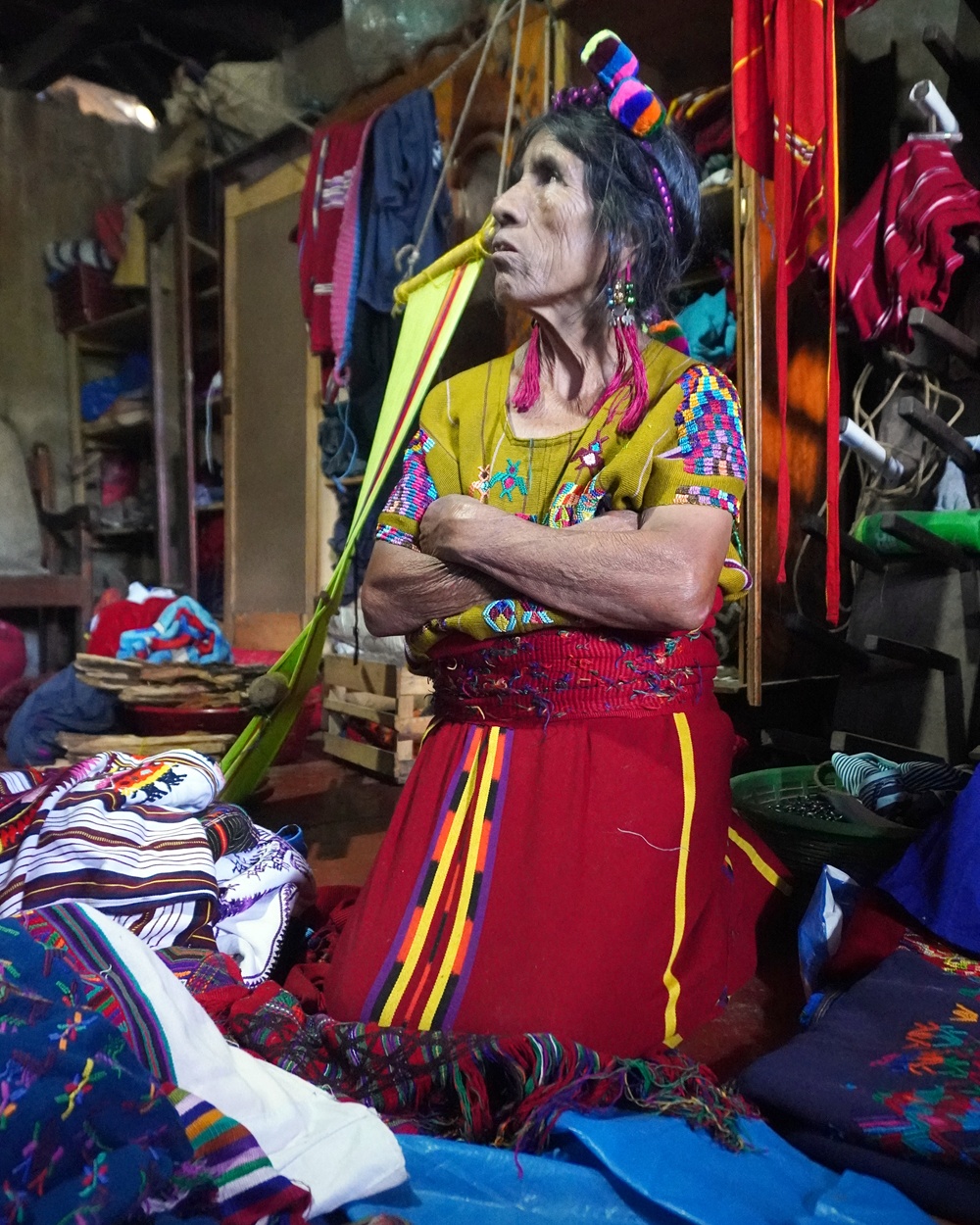 Ellátogattunk egy idős szövőasszonyhoz, aki nem igazán beszélt spanyolul. Vettünk tőle ezt-azt, ezzel támogatva a családját. Chajulban nincsenek turisták, így ritka, hogy a szövőasszonyok pénzhez jutnak.
