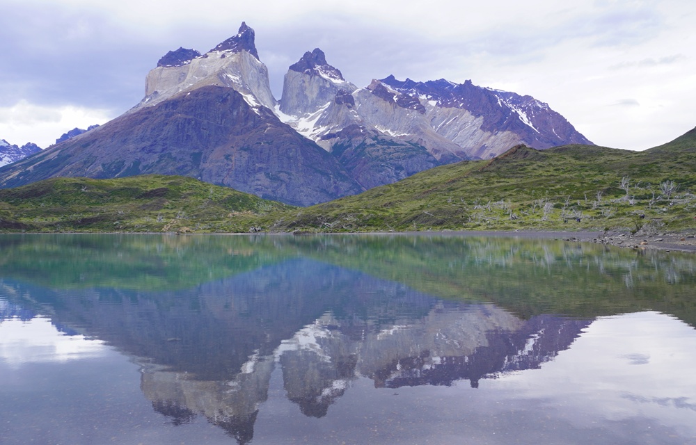 A pudetói kikötő felé haladva feltűnnek a nemzeti park ikonikus gránittömbjei. A tükröződés miatt tudjuk, hatalmas mázlink van, mivel teljes a szélcsend a Nordenskjöld-tó partján.
