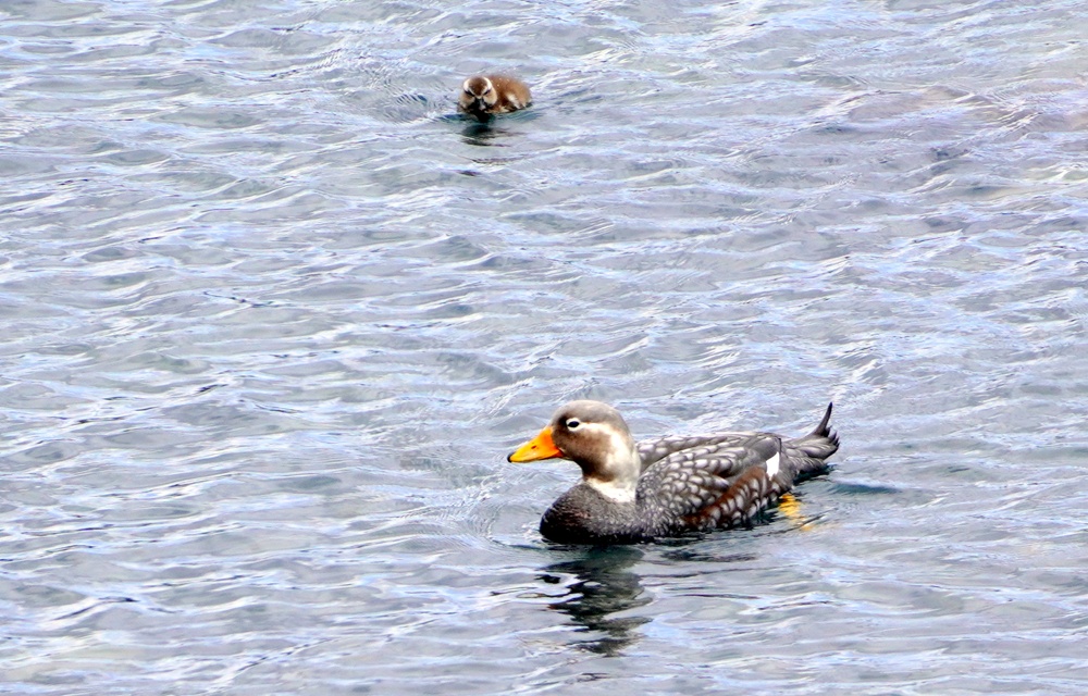 Nem csak a növények, az állatok is ekkor bújnak elő. Ő itt a röpképtelen gőzhajóréce, ami nevét onnan kapta, hogy a vízfelszínen futva úgy kavarja fel a vizet, mint egy gőzhajó lapátkereke.