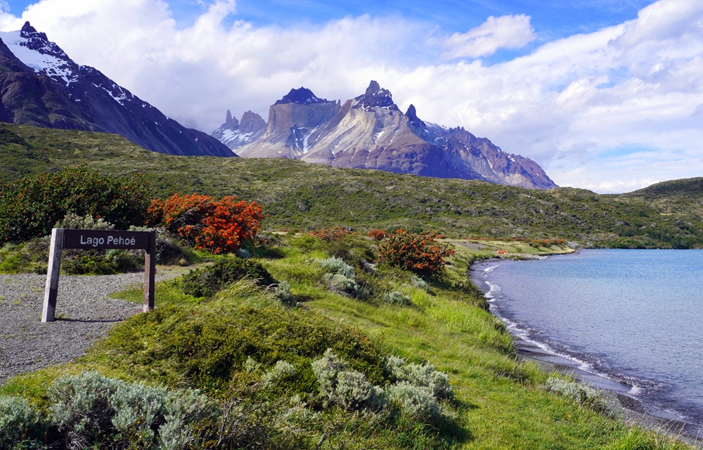 Az ösvényről fantasztikus a kilátás a Nordenskjöld-tóra. Előtérben a Los Cuernos menedékház látható.