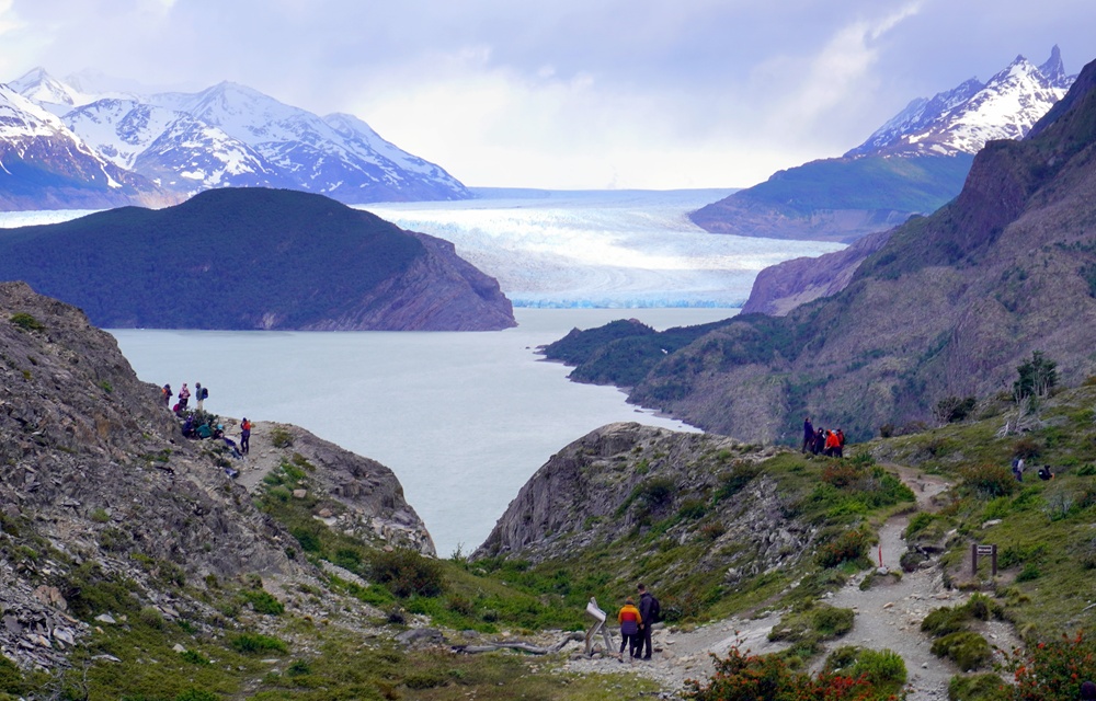 Az első napon a Grey-gleccserhez túrázunk el. Két és fél óra gyaloglás után tűnik fel először a gleccser.
