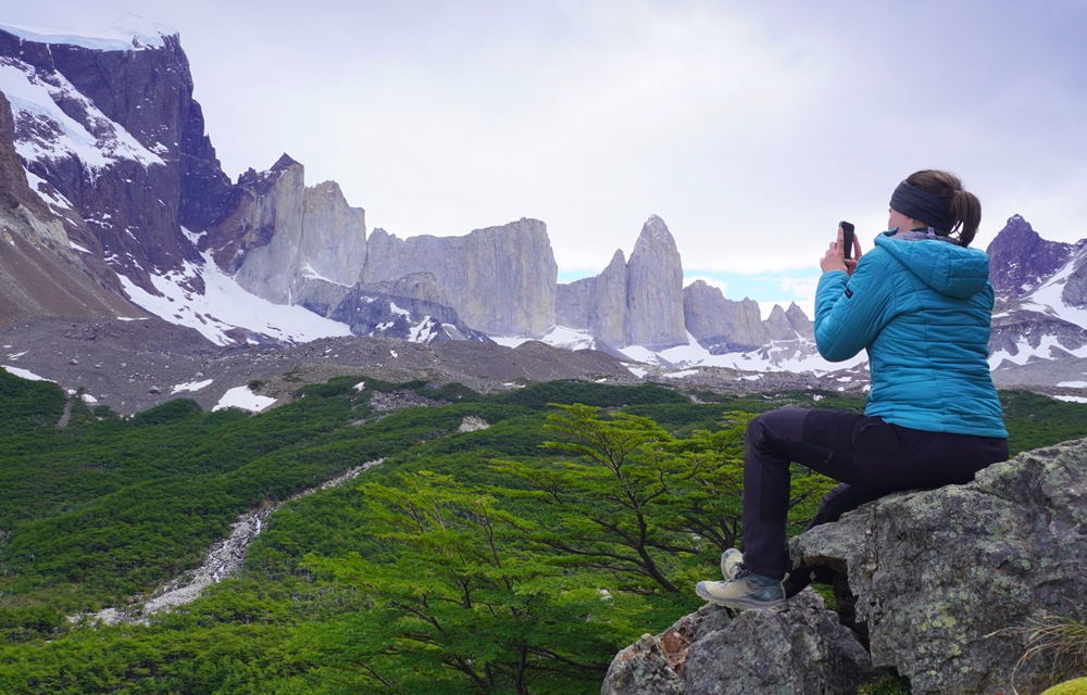 A vízeséstől teszünk egy 40 perces túrát a Cuernos kilátóponthoz. Menet közben csodálatos panoráma tárul elénk háttérben a Paine Grande havas csúcsaival.
