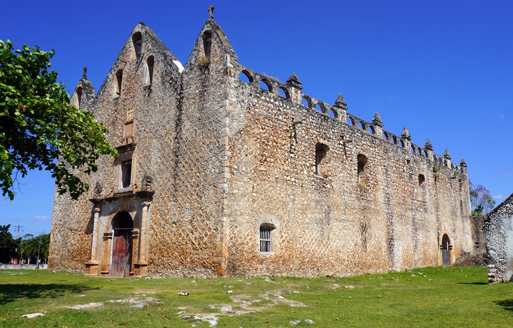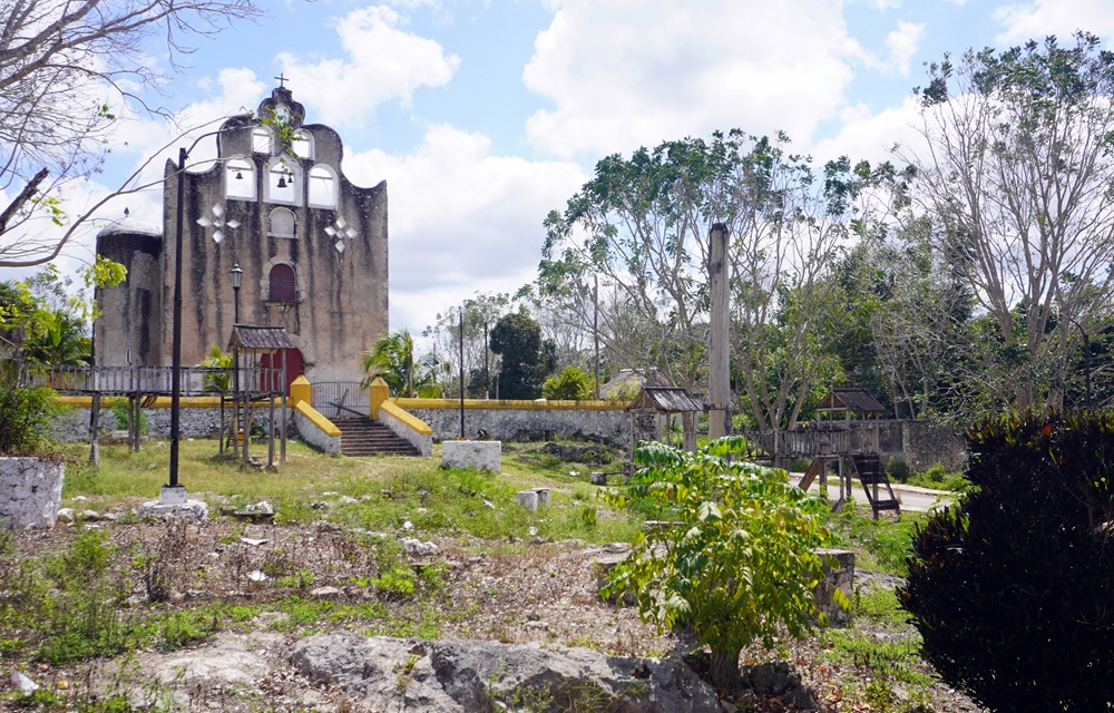 A beszerző körút során van időm megtekinteni Tihosuco nevezetességeit. Ilyen a főtéren álló templom, aminek nincsen homlokzata, mert 1847-ben egy felkelés során felrobbantották az őslakók. Ezzel a robbantással vette kezdetét a Kasztok háborúja, amit az őslakosok folytattak a mexikói kreol telepesek és az őket helyzetbe hozó egyház ellen. A yucatáni polgárháború több mint 50 évig tartott. 1901-ben tették le a fegyvert, de hivatalosan csak 1933-ban kötöttek békét az indiánok a mexikói állammal.