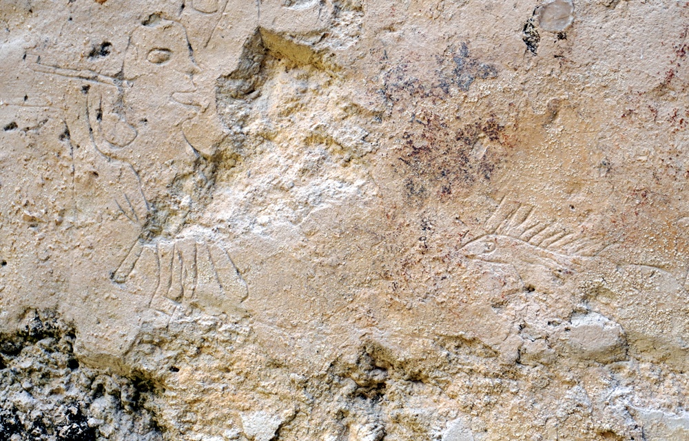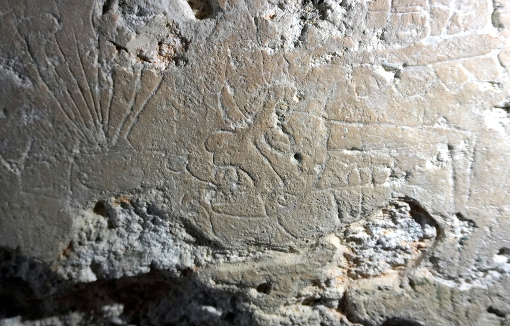 La Blanca nevezetességei a belső falakon láthatók. A karcolatok a késő klasszikus korban keletkeztek.