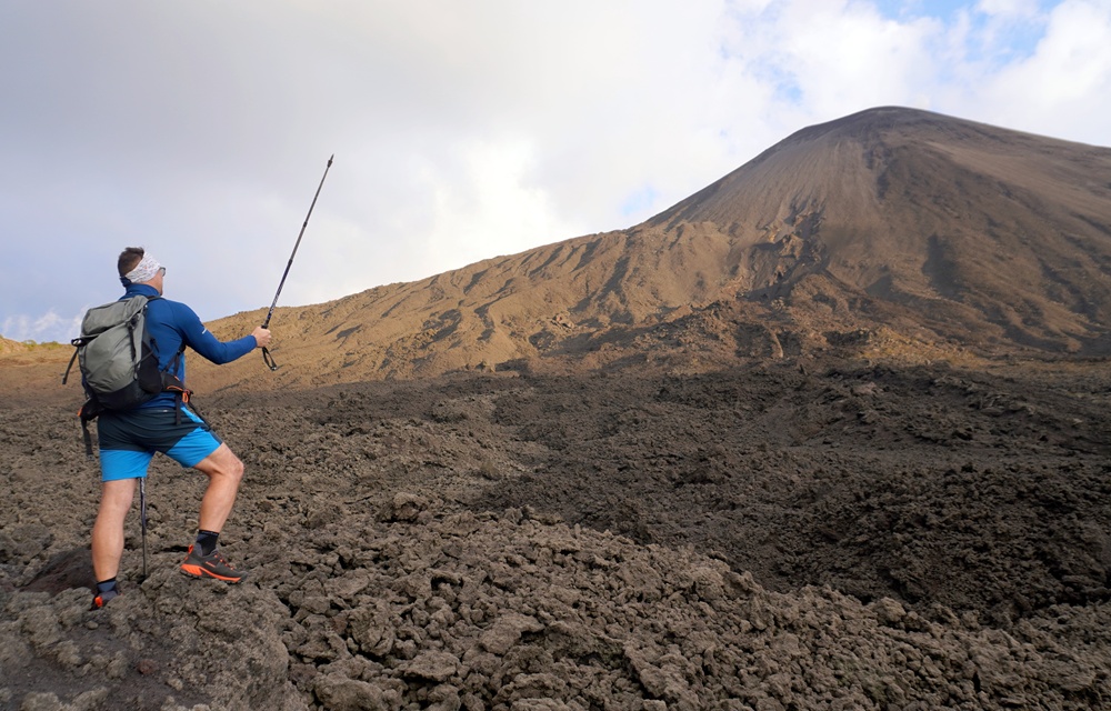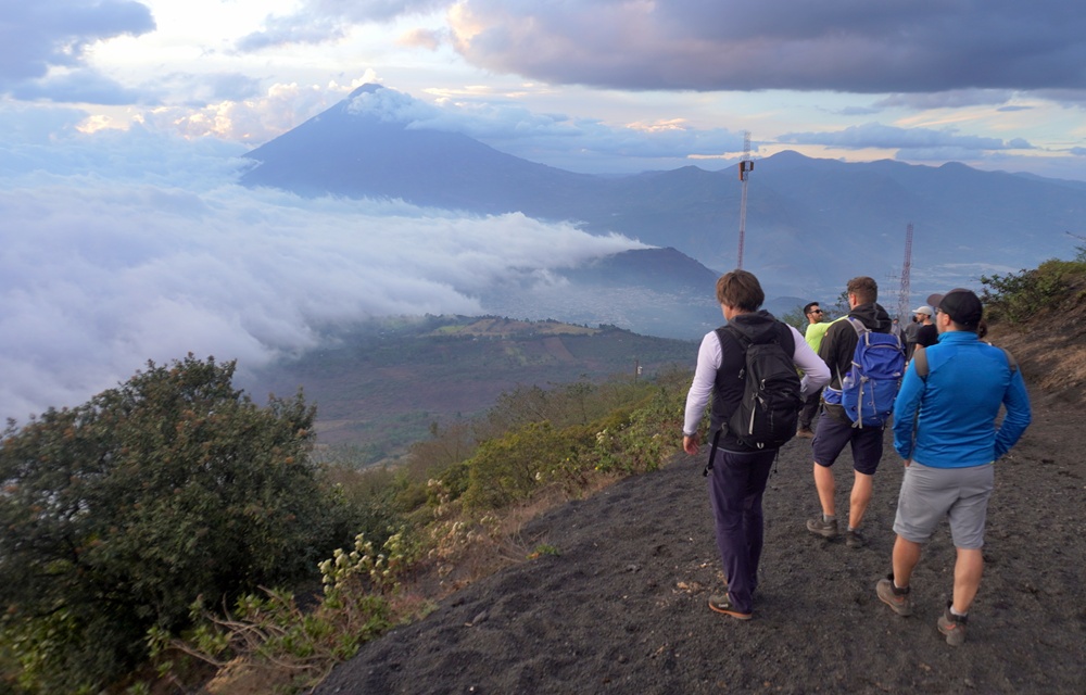 Ha láva nincs is, a kilátásért abszolút megérte a túra. A háttérben a felhők fölé emelkedő Agua-vulkán látható.