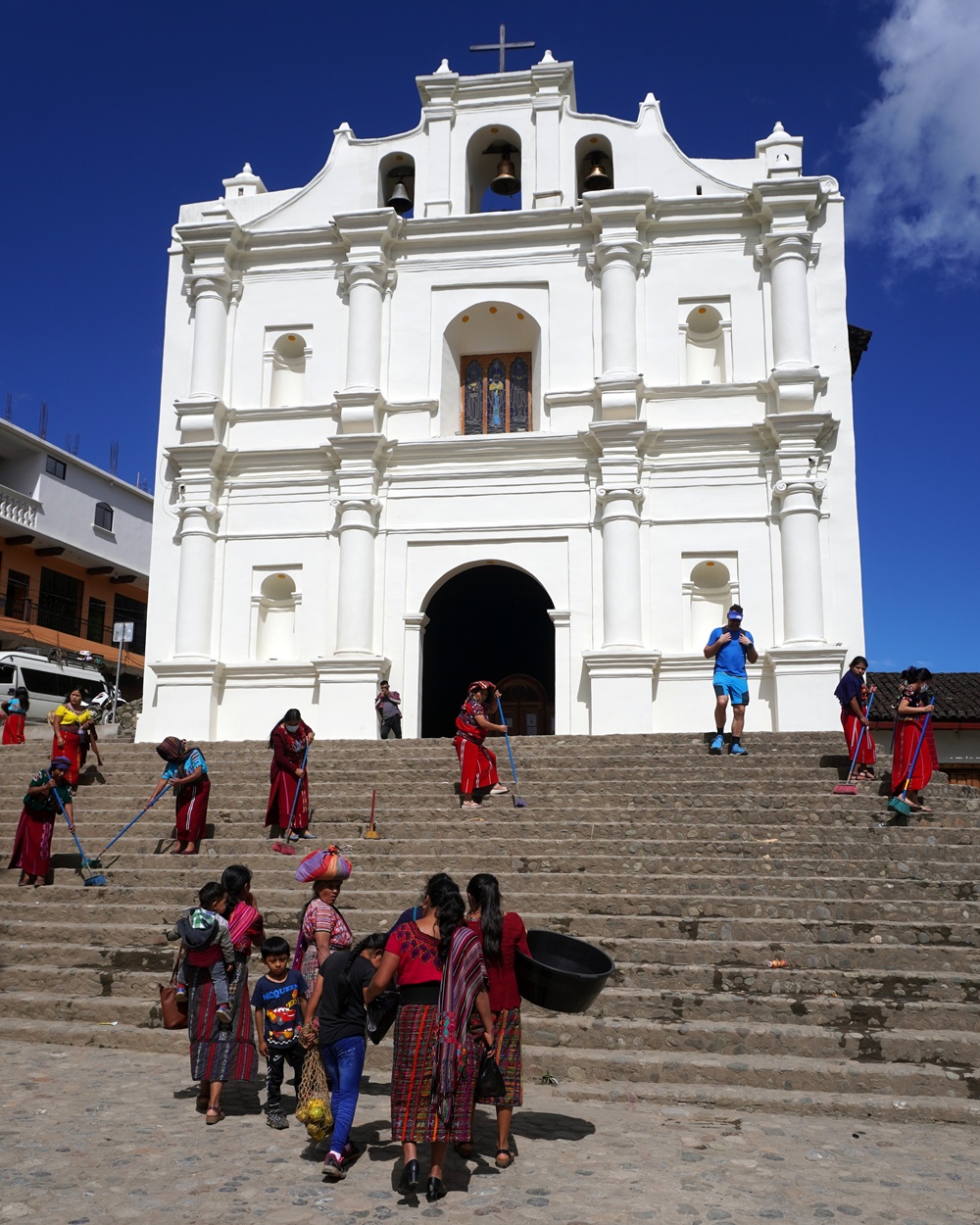 Ez már Chichicastenango templomának lépcsője, ahol ezúttal is szertartásokat tartottak a kicse sámánok. Ez a város a vallási szinkretizmus alfája és omegája.