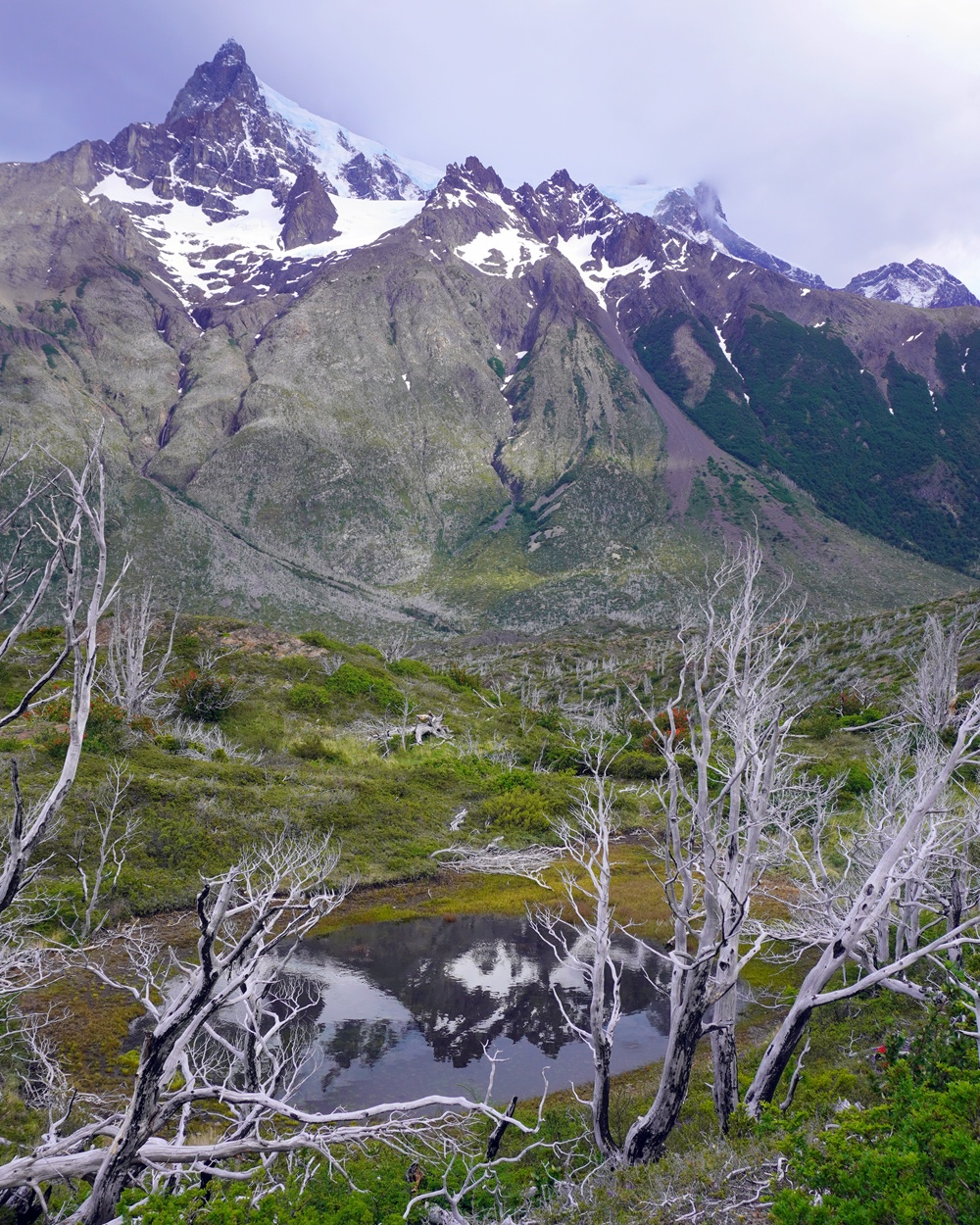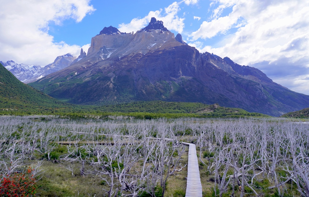 A kopasz fák a Torres del Paine legnagyobb természeti katasztrófájának, a 2011-es erdőtűznek az emlékei. Egy izraeli turista megpróbálta az erős szélben elégetni a WC-papírját, aminek köszönhetően hónapokig égett a park, 17 000 hektár erdőt felperzselve.