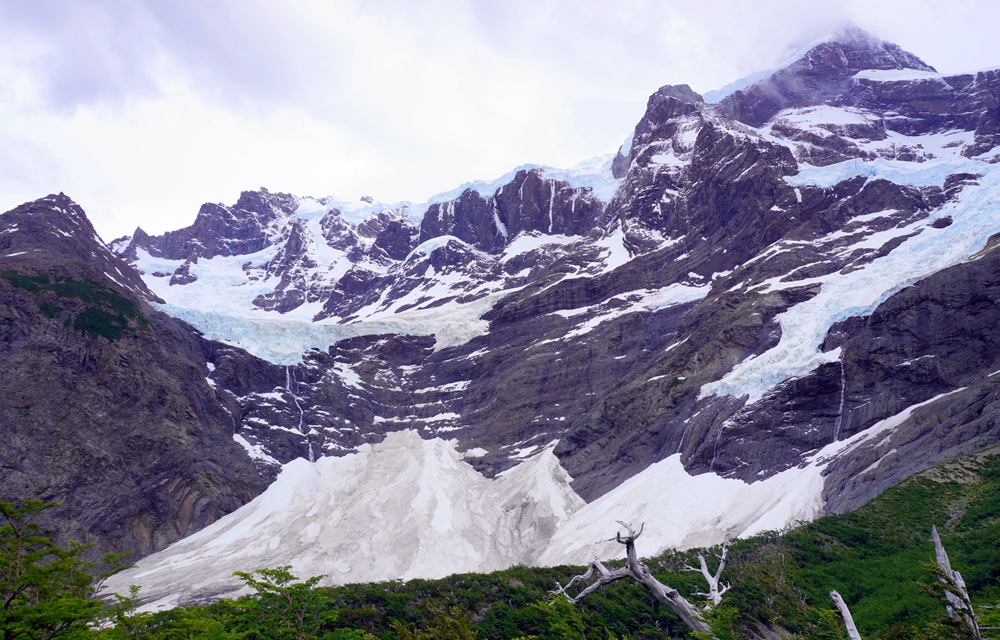 Délután feltornázzuk magunkat a Valle Francésbe, ahonnan rálátni a Paine Grandéról alászakadó lavinákra.
