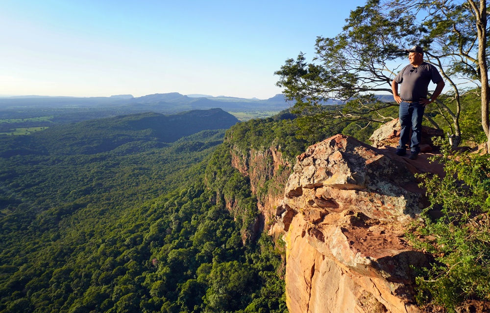 Gabriel egy ötvenes éveinek végén járó tőzsgyökeres aquidauanai, mégis én mutatom meg neki először ezt a mindössze 25 kilométerre fekvő táblahegyet. Bevitetem magamat vele az erdőbe, amihez nem igazán fűlik a foga, de ez érthető, mert nem nagyon tud motort vezetni. Az egyik emelkedőnél egyszer csak megáll, majd nyom neki egy teli gázt, amitől megugrik a motor. Érzékelem, hogy mi fog következni, így hátrafelé leugrom a gépről, ő meg berepül vele az erdőbe. Jajveszékel a motor alatt, amit leszedek róla. Nincs nagy baja és a motornak sem, csak a visszapillantója tört le, így tudunk tovább haladni.