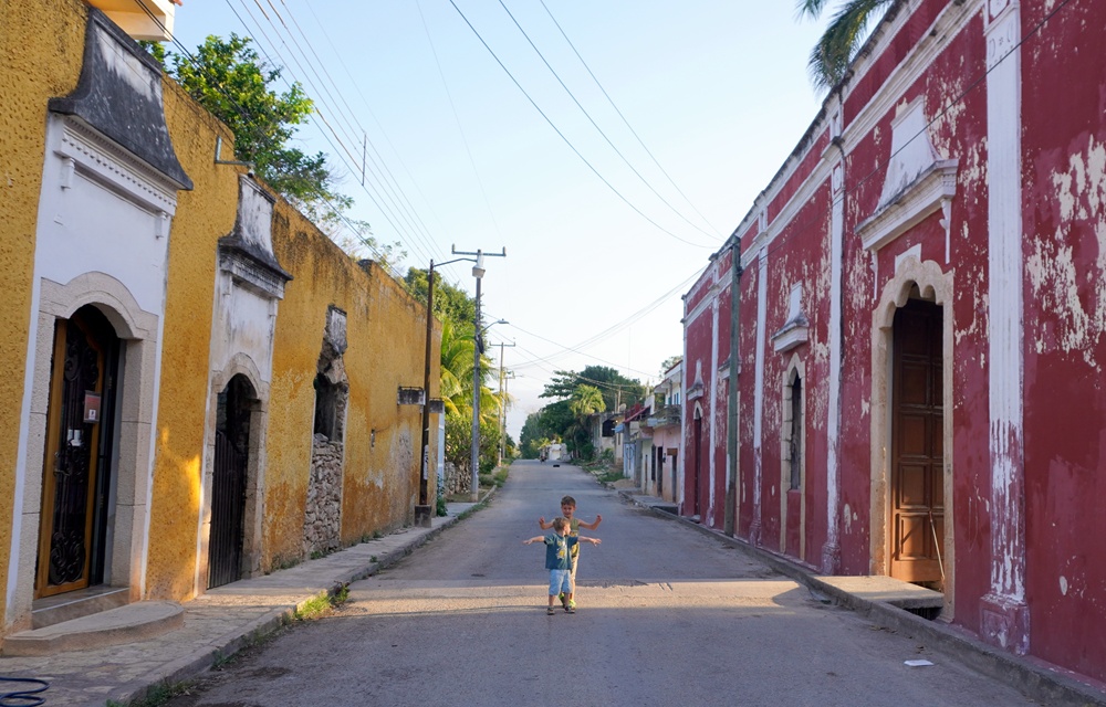 Gyerekeim reggel lejtenek egy könnyed táncot Tihosuco csendes utcáin