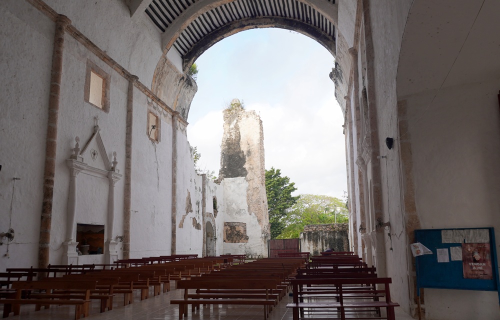 A beszerző körút során van időm megtekinteni Tihosuco nevezetességeit. Ilyen a főtéren álló templom, aminek nincsen homlokzata, mert 1847-ben egy felkelés során felrobbantották az őslakók. Ezzel a robbantással vette kezdetét a Kasztok háborúja, amit az őslakosok folytattak a mexikói kreol telepesek és az őket helyzetbe hozó egyház ellen. A yucatáni polgárháború több mint 50 évig tartott. 1901-ben tették le a fegyvert, de hivatalosan csak 1933-ban kötöttek békét az indiánok a mexikói állammal.