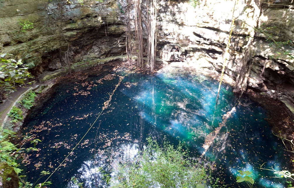 Dziuché felé féltávnál megállunk Sacalaca falujában, aminek határában található a Yokdzonot cenote. A park bejáratánál egy Claudio nevű fickó fogad minket, akiről lerí, hogy nem teljesen ép. Ragaszkodik hozzá, hogy lekísérjen minket a cenotéhez, ami eléggé elhanyagolt. Mivel ez nem turistás hely, nem takarítják; a víz felszínét falevelek borítják. Ez persze Barangót nem zavarja egy pillanatig sem, így úszom egyet a nagyobbik fiammal. Zaránd nem hajlandó bejönni, azt mondja, neki nem tetszik ez a hely, túl félelmetes, hogy egyedül vagyunk, ráadásul a minket kísérő bácsi is furi. Pedig nem olyan rossz a Yokdznot cenote, mert nem mindenhol röpköd az ember feje felett egy halom motmot.