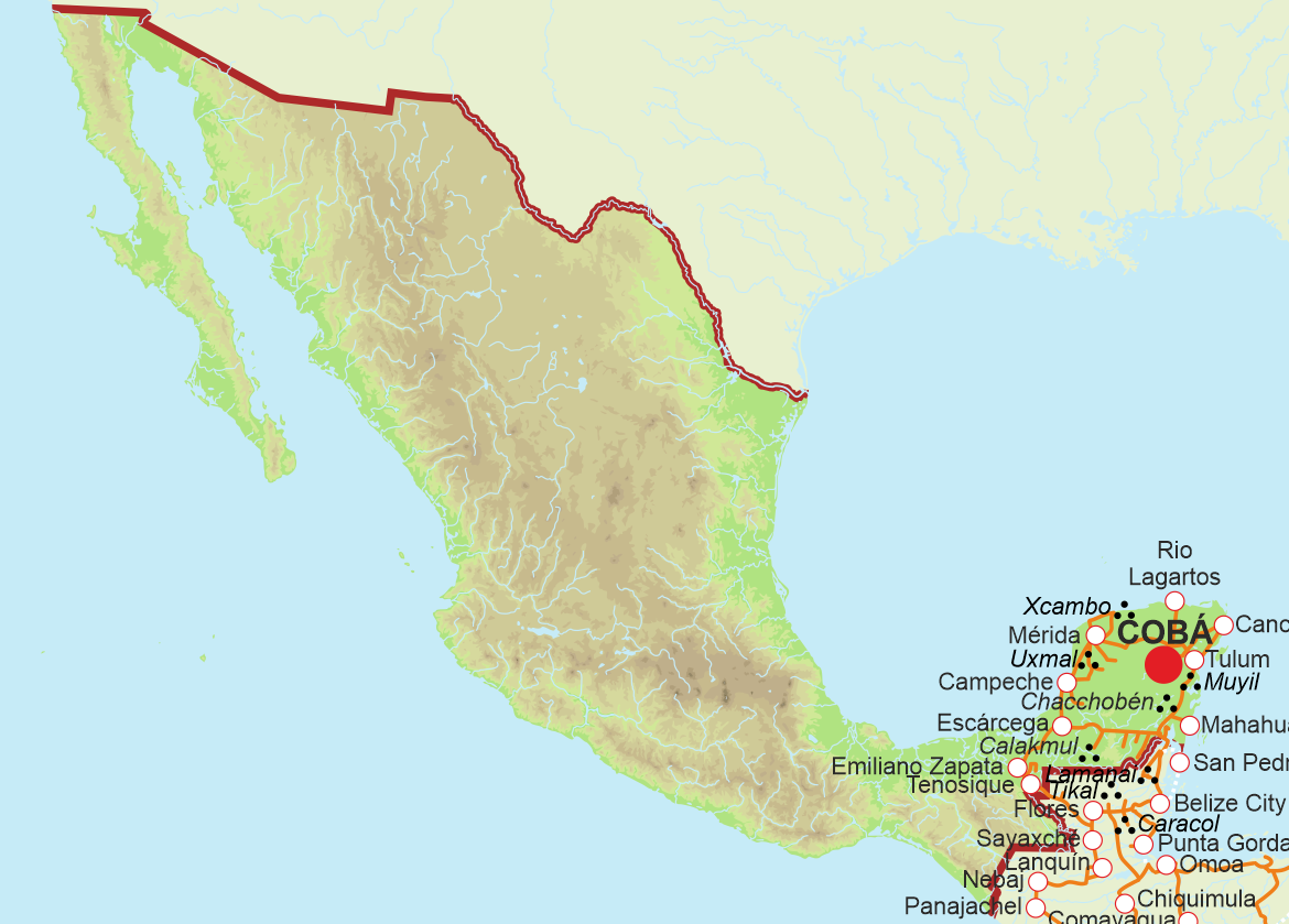 Az autóbérlőnél egy Chevrolet Aveót rendelünk be, de az valami miatt jó ideig nem akar megérkezni. Helyette egy öreg Nissant akarnak ránk tukmálni automata váltóval, de közöljük, hogy azt nem kérjük, megvárnánk, amíg előkerítik a manuál váltós Chevrolet-t. Jó két órába telik, mire a kocsit meghozzák, így kicsit késve indulunk neki a mára tervezett távnak, aminek az érkezési állomása nincsen meghatározva, csak annyi, hogy a lehető legközelebb kerüljünk Chiapashoz. Az biztos, hogy Isla Mujeres után egy másik nagy hiányosságot szeretnénk pótolni a Yucatánon, ez pedig Cobá romvárosa, ami Chichén Itza és Tulum mellett a harmadik leglátogatottabb régészeti park a félszigeten.