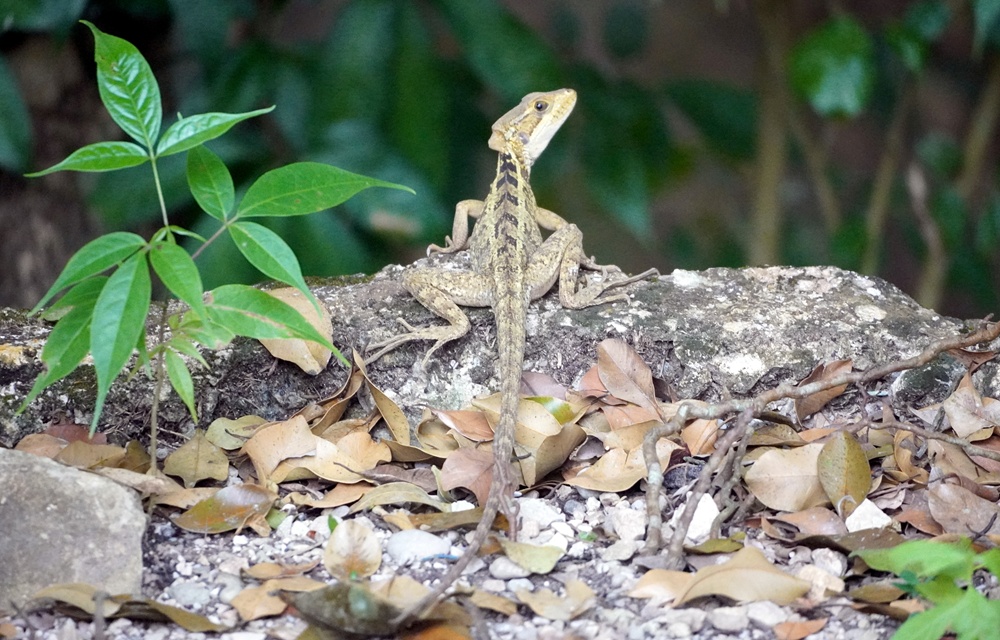 A lodzs, a szoba, a környezet, minden csodaszép. Abszolút az a hely, ahová lehet utazást tervezni azoknak, akik szeretnének egy kicsit megismerkedni Chiapas őserdei élővilágával. A szervezett csónaktúrákat kihagyjuk, mert gyerekekkel órákat ülni egy csónakban baziliszkuszokat és bozótmadarakat cserkészve nem túl felemelő, így inkább a lodzs és a falu környékén sétálgatunk. Így is van mit fotózni.