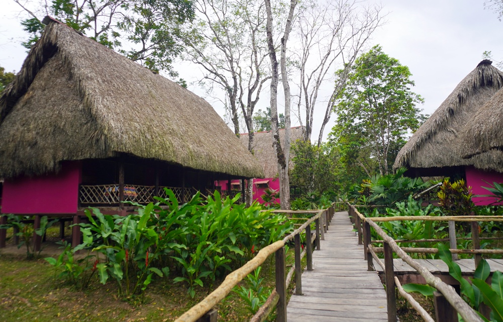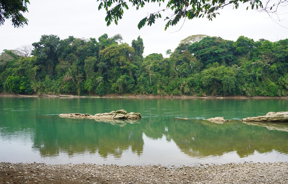 Az út errefelé már kevésbé látványos, El Ixcán után - ahol szó szerint érintjük a határt - kifejezetten unalmassá válik. Egy katonai ellenőrzőpontnál kanyarodunk le a főútról és indulunk meg északnak Lacandónia, vagyis a lakandón maják falvai mentén. A környék lakói többnyire marhatenyésztésből és kukoricatermesztésből élnek, népviseletet errefelé már senkin nem látunk. Sorban átkelünk Boca de Chajul, Lacantún, Galacia és López Mateos településein mielőtt megérkeznénk a Rio Lacantún partján fekvő Reforma Agrariába, aminek határában áll a Las Guacamayas Ecolodge. Nincs foglalásunk, de nem is nagyon kell, mert a szálló teljesen üres. Nem olcsó itt megszállni, illetve nem illeszkedik a budget-ünkbe, de a jövőbeni Mirador-túrák okán kénytelen vagyok áldozni rá.