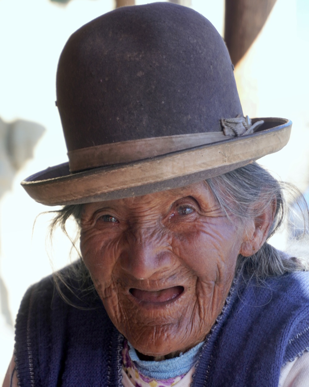 A Valle de la Luna bejáratánál odalépett hozzánk egy spanyolul nem beszélű idős aymara asszony pénzt koldulni. A fényképért cserébe kapott is pár bolivianót. Amúgy a néni 98 éves és minden nap ott lófrál a badland bejáratánál.