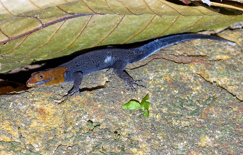 A titi az amerikai kontinens egyik legkisebb majma, súlya az egy kilót sem éri el. Általában bandákba verődve látható, de ez a példány teljesen egyedül van. Állítólag van, hogy kiközösítenek maguk közül valakit, így fordulhat elő, hogy a titi magányos legelészik a lombkoronában. Mivel titit láttunk már eleget életünk során, nem ő, hanem egy gyík jelenti a legnagyobb élményt. Bár barna a feje és kék a teste, mégis sárgafejű gekkónak hívják.