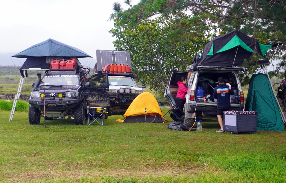 Kora hajnalban érkezik Raúl és a haverja. Felmálházzuk a kocsikat és irány a Gran Sabana. Hosszú, unalmas az út, Guasipatí után rengeteg a kátyú, alig haladunk. Nagyjából 8 órás utazás után, délután 2 körül érkezünk Luepába, ahol már vár ránk a másik kocsi. Átmálházunk, majd megindulunk a Kavanayénbe vezető földúton Arapariquen pemón falu irányába. A falun túl, az Aponwao-folyó partján áll egy őslakosok által üzemeltetett táborhely. Meglepő módon nem mi vagyunk az egyedüliek, rengeteg terepjáró áll a parton. Nagyon spéci járgányok saját starlinkkel, minőségi sátrakkal. Szervezett dzsiptúrán vannak gazdag venezuelaiak, akik a Gran Sabana híres vízeséseit járják végig.