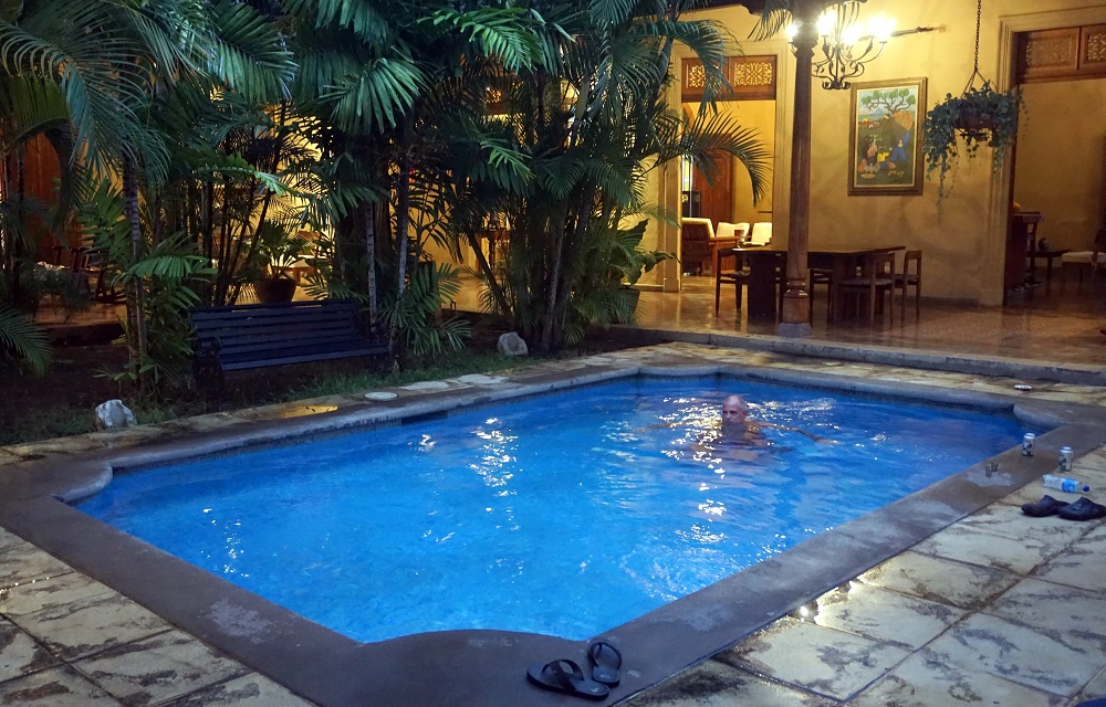 Zoli élvezi a szállónk medencéjét