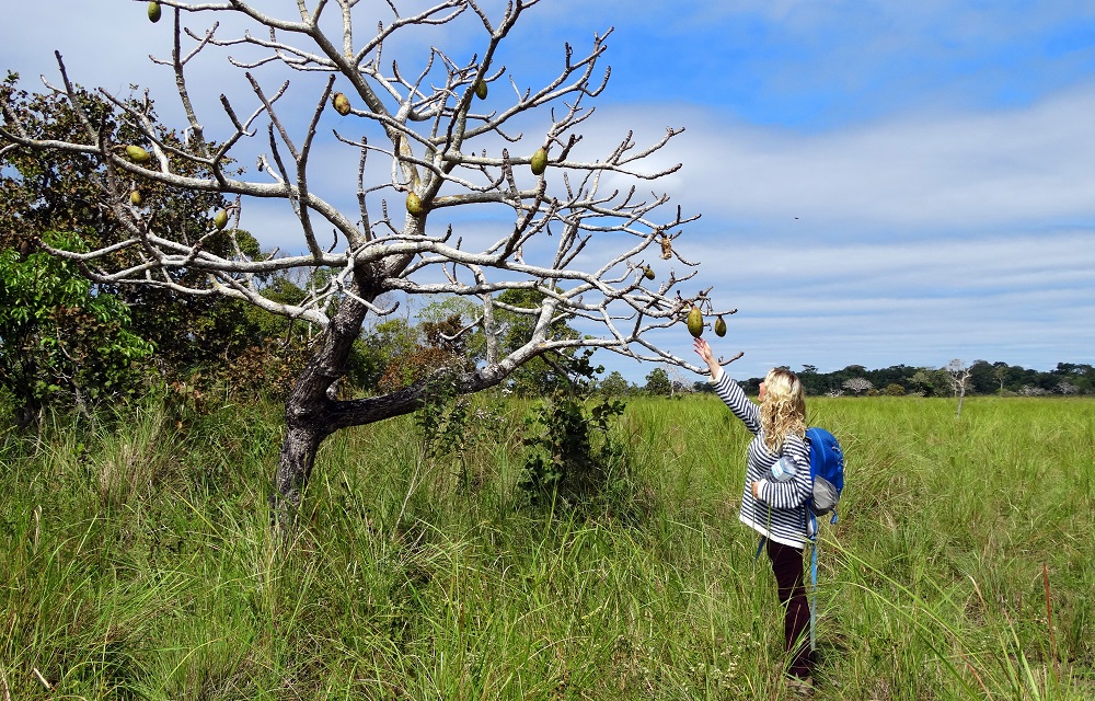 Az eső mostanra teljesen elállt és végre kikandikál a nap. Fél óra múlva a 15 fokos hűvös időt 30 fokos hőség váltja. Átkelünk a jelzett kapun és valóban megpillantjuk a tornyot. Odajutni nem könnyű, mert ahogy közeledünk a lagúnához, úgy válik egyre mocsarasabbá a szavanna. Aztán rálelünk egy csapásra, amin egész a fatákolmányig jutunk, amire persze nem lehet felmászni, mert a lépcsője le van szakadva. A Laguna Normandiát azért megpillantjuk a nádason túl, de azokat a fekete kajmánokat, amiről a tó híres, nem sikerül lencsevégre kapnunk.